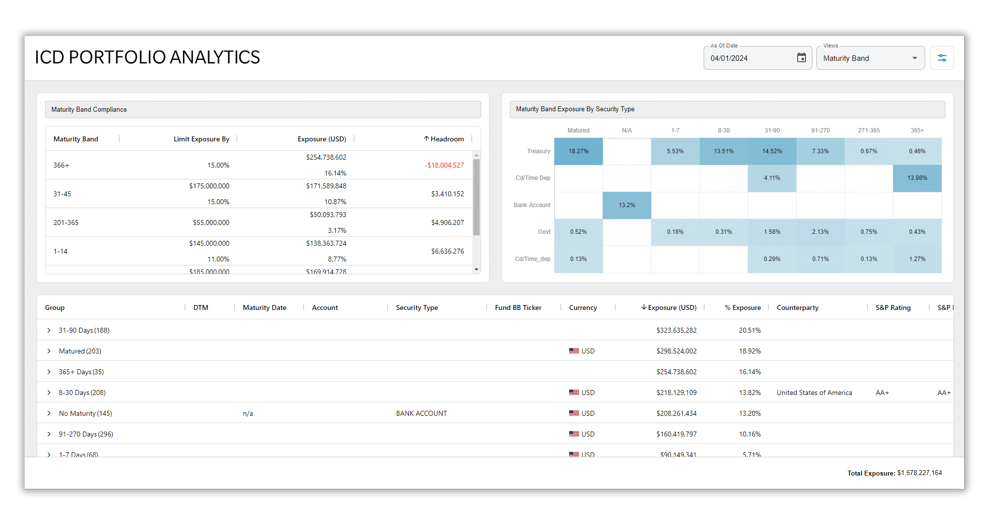 ICD Portfolio Analytics doesn’t just aggregate data. It standardizes it and then presents it through a series of highly configurable dashboards that enable treasury teams to easily view, analyze and make decisions on demand. You can explore each of the solution’s unique tiers of functionality in more detail below.